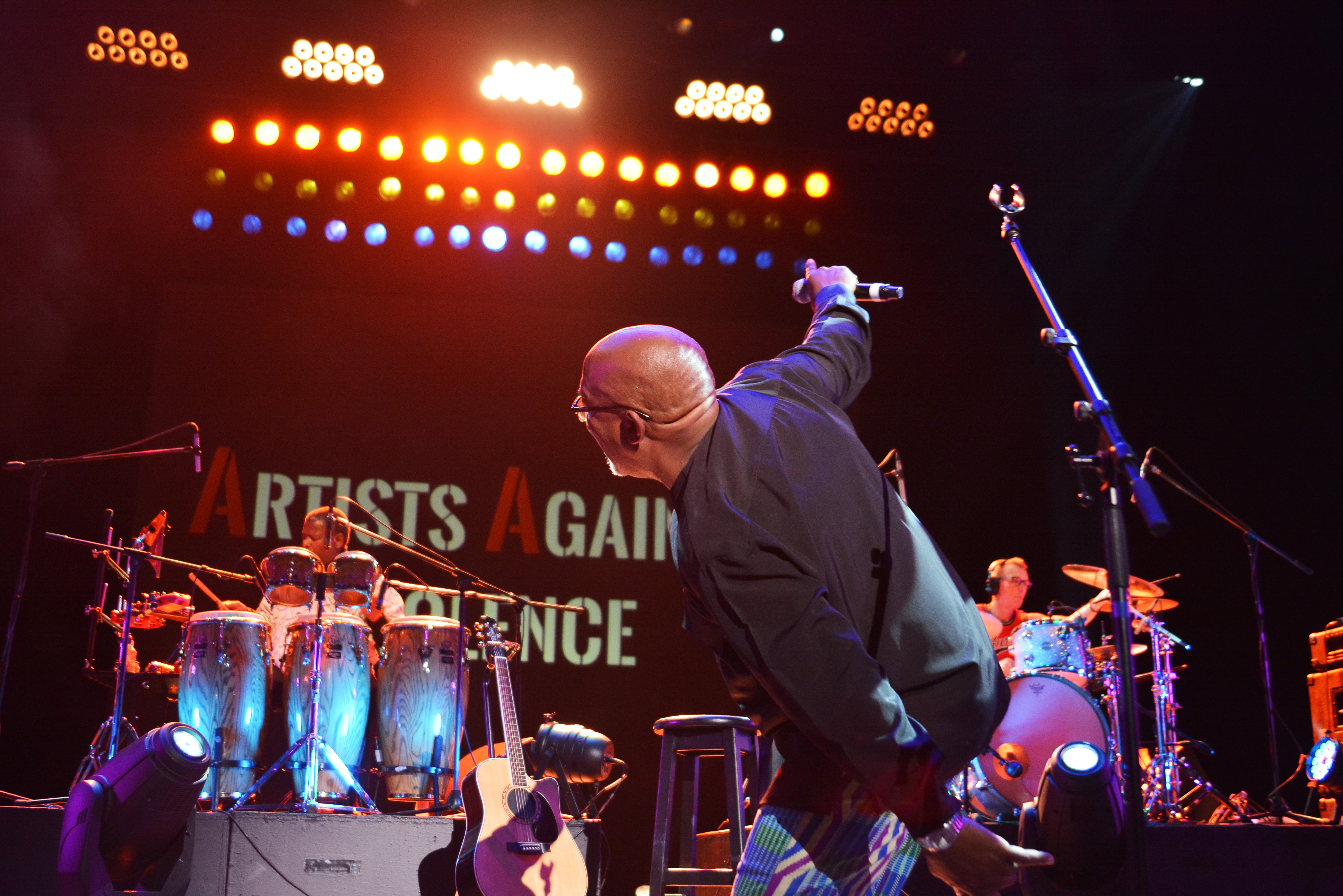 Sipho “Hotstix” Mabuse got the crowd up off their feet! It had to be said that one of the highlights of the evening was this legendary saxophone playing singer though the benefit concert, 2 July 2014 at the joburg theatre start off on a somber tune it end off with a dancing celebration houring the memory of musician Bongani Masuku and all artists that have fallen victim to violence crimes. Picture: Valentina Nicol