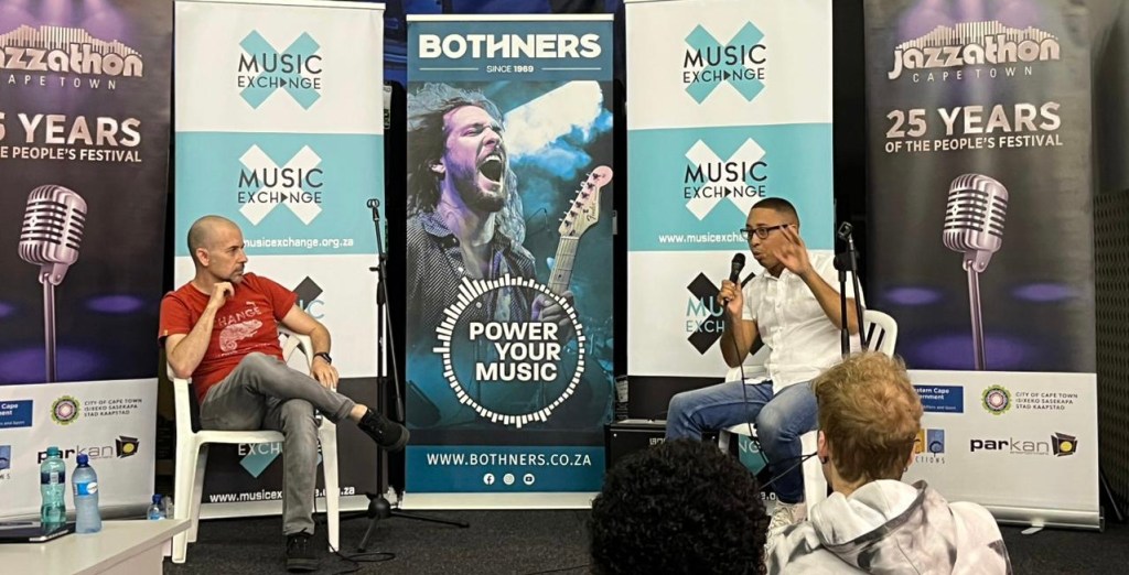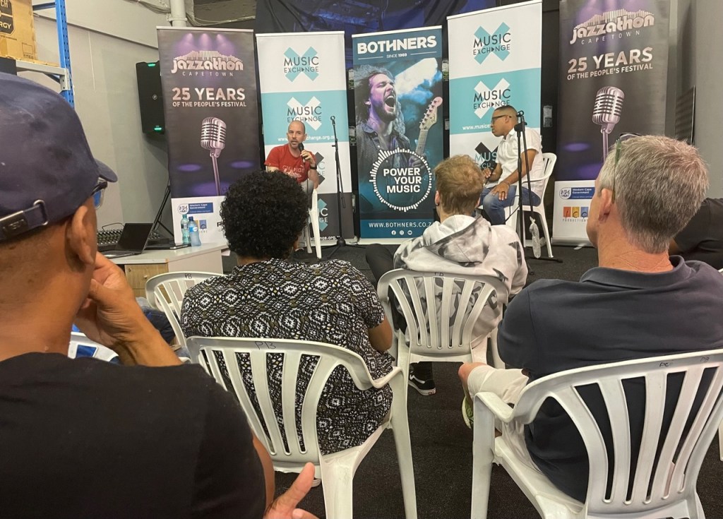 RJ opened up as to how he got Cameron to feature on the new work YONELA coming out later this month, and the process involved as well as splits and the paperwork needed to achieve success. As singer songwriter Andy Hoyle – mentioned in a note post event – such good info and so much to learn, from creatives at the top of their game. Nice to see Dylan Red who is working with RJ whilst he is in Cape Town seek out more knowledge. Craig Parks from Jazzathon and Martin Myers facilitated the morning. Jerome the store manager of the Claremont branch was overjoyed with the turnout and engagement. Enjoy the pics of the morning.