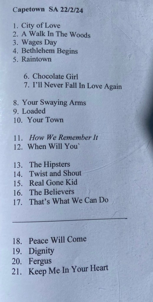 The ticket pricing was good, but I would like to see younger acts open, one thinks of Dylan Red who fits the mould of Deacon Blue, did we really need to see Watershed again? Not even a mention on their insta page that they playing /played with DB at Kirstenbosch.ย ย