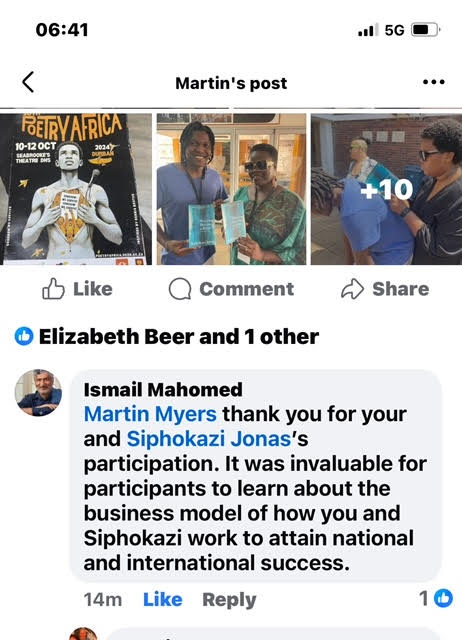 Martin Myers was invited to do a workshop at Poetry Africa on Intellectual Property and monetising your work.